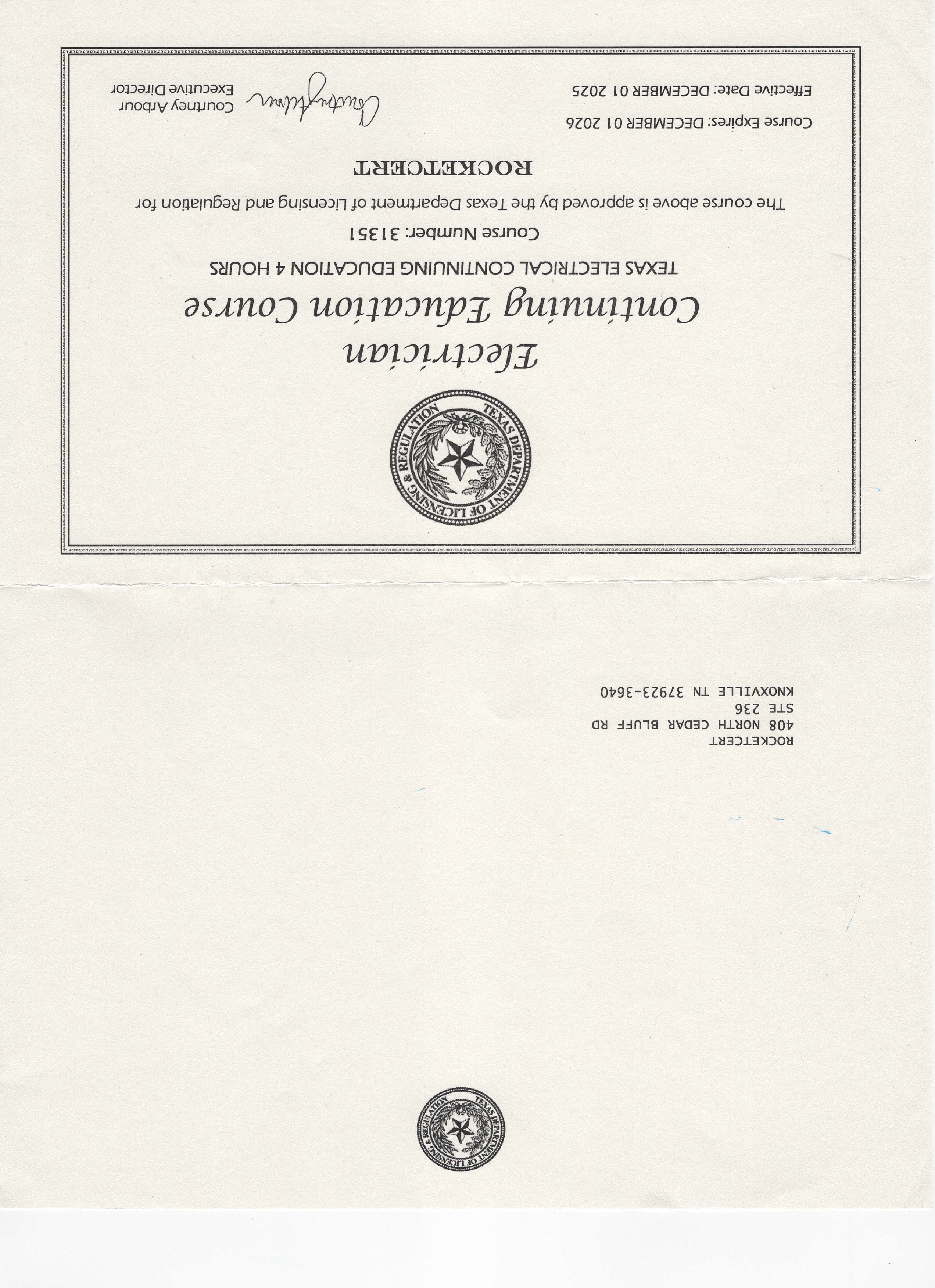 Now you can complete the 4 hours of required Texas Electrical Continuing Education online with RocketCert. Because the course is online you can take it at your own pace, whether that be all at once or over time. We won't restrict how long you can access the course either - once you buy the course it's yours forever. It covers the required topics and has received approval from the state board.