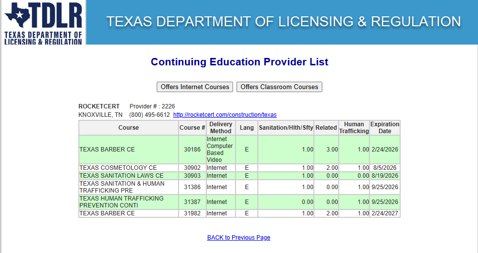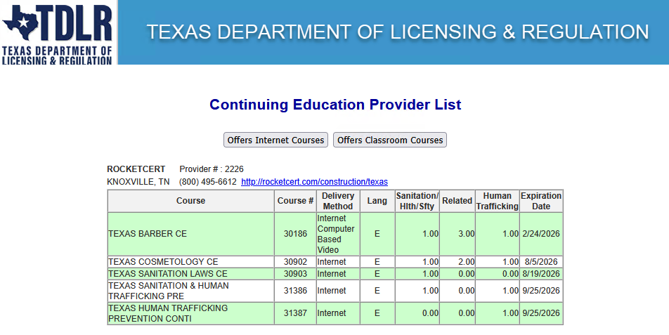 Individual barber licenses in Texas expire every two years. Any time during this period, license holders are required to complete 4 hours of continuing education from an approved education provider. The topics of the education are set by the board and must comply with their requirements. More information on these topics can be found in the sections below.